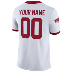 Celebrate Razorbacks spirit with the Custom Arkansas Razorbacks Football White Game Stitched Jersey w/ SEC Patch, representing the University of Arkansas (U of A) and Arkansas pride. Featuring stitched numbers, an embroidered Razorbacks logo, a personalized nameplate, and stitched patches, this white game jersey is ideal for fans honoring the team both on and off the field.